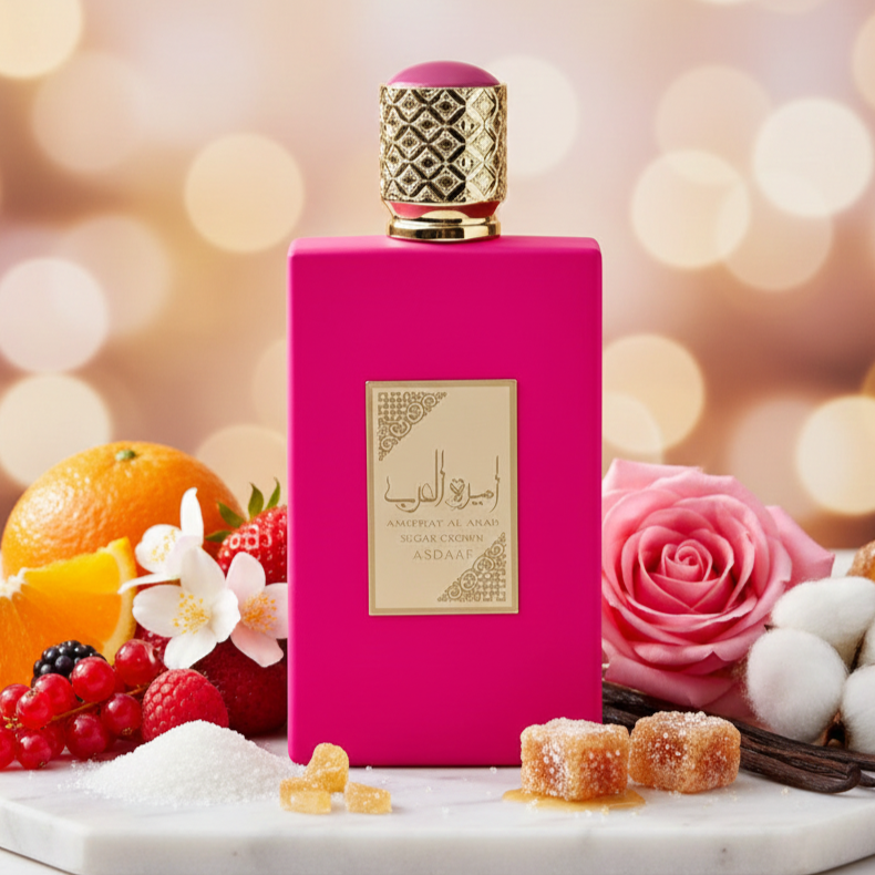 Découvrez Ameerat Al Arab Sugar Crown de Asdaaf, une eau de parfum orientale gourmande spécialement conçue pour la femme moderne qui aime les fragrances sucrées, élégantes et enveloppantes. Ce parfum féminin séduit par son équilibre parfait entre douceur sucrée et chaleur ambrée, créant une signature olfactive addictive et réconfortante.